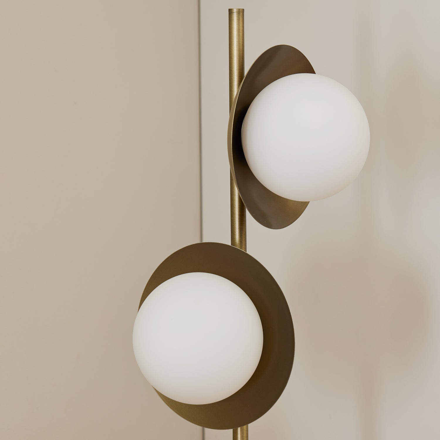 The Marlow Antique Brass Floor Lamp makes a striking statement with its sculptural design. Featuring a tall stand with two frosted glass globes framed by antique brass discs, it casts a warm, ambient glow while adding a touch of modern elegance. Ideal for a living room or reading nook, this floor lamp blends function and artistry to elevate your space.