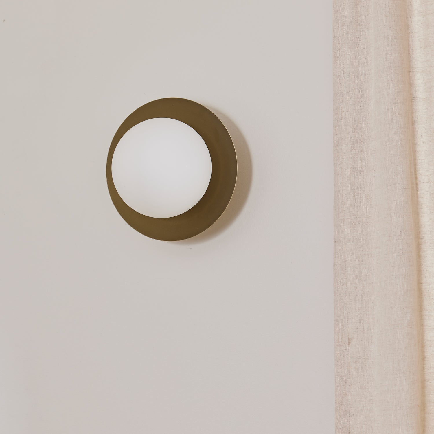The Marlow Antique Brass Wall Sconce brings sculptural elegance to your walls. Featuring a frosted glass globe framed by a circular antique brass disc, it creates a soft, ambient glow while serving as a striking design detail. Perfect for hallways, bedrooms, or living areas, this sconce adds both warmth and sophistication to your space.