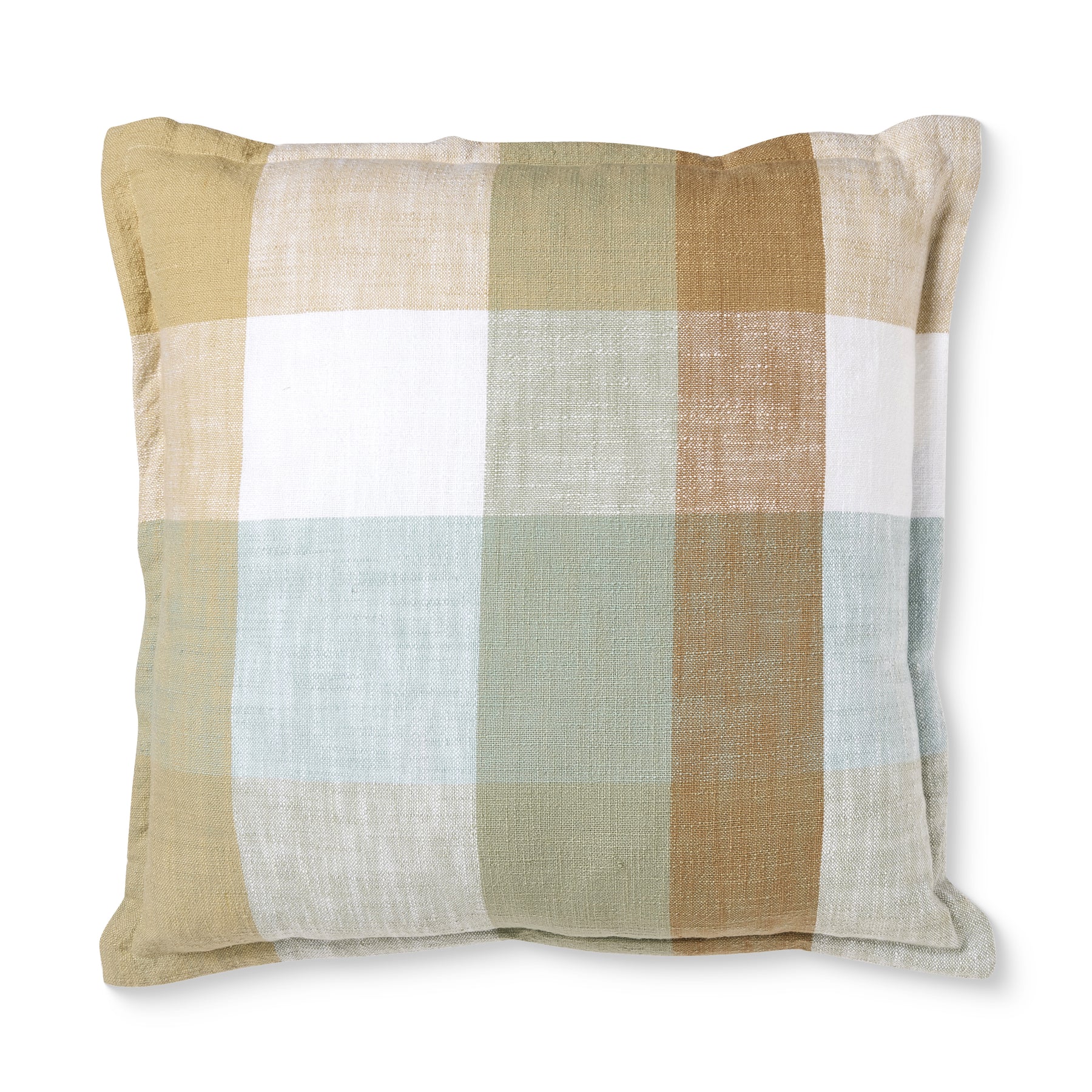 The Reine Multi Check Cushion adds a relaxed and timeless look to your living space. Woven in a soft palette of muted green, caramel, beige, and white, the large check design brings a casual yet refined touch to your home. With its natural texture and easy-to-style tones, this cushion is perfect for layering with plains or mixing with patterns for a cosy, inviting finish.
